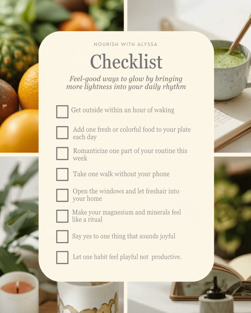 It’s also a beautiful time to come back to the basics that make the biggest difference…morning light, fresh air, simple nourishment, and creating space to actually be present in your life.